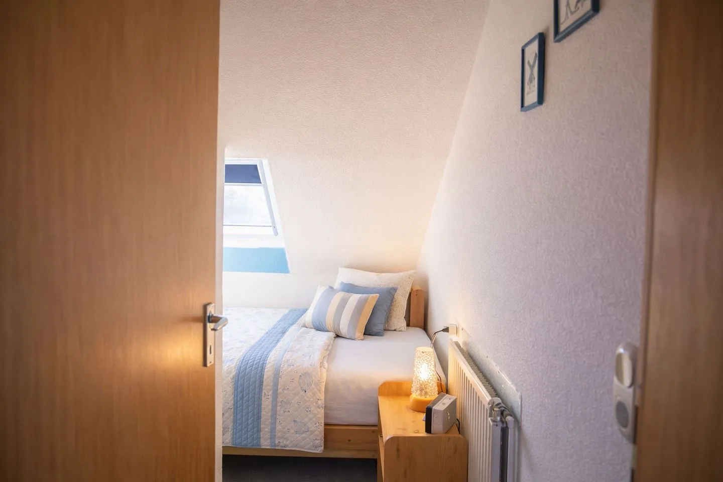 In der zweiten Etage des Küstenhauses erwartet Sie eine liebevoll eingerichtete Ferienwohnung, die auf rund 23 Quadratmetern alles vereint, was es für erholsame Tage braucht. Ob als Paar, kleine Familie oder mit treuem Vierbeiner – bis zu drei Personen finden hier einen behaglichen Rückzugsort, der Ruhe, Komfort und Meeresnähe perfekt verbindet.