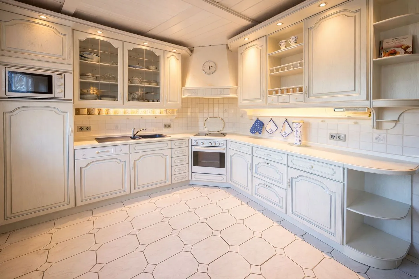 Die separate, gut ausgestattete Küche bietet alles, was Sie für einen gelungenen Urlaub brauchen. Backofen, Cerankochfeld, Kühlschrank mit Gefriermöglichkeit, Mikrowelle und alle wichtigen Küchengeräte stehen bereit, damit Sie Ihre Lieblingsgerichte ganz nach Lust und Laune zubereiten können. Zwei geschmackvoll eingerichtete Schlafzimmer sorgen für erholsame Nächte und angenehme Rückzugsmöglichkeiten. Ein Schlafzimmer ist mit einem gemütlichen Doppelbett ausgestattet, das zweite verfügt über zwei Einzelbetten und eignet sich ideal für Kinder oder Mitreisende. Dank der Außenrollos lassen sich die Räume angenehm abdunkeln und schaffen beste Voraussetzungen für ruhigen Schlaf.