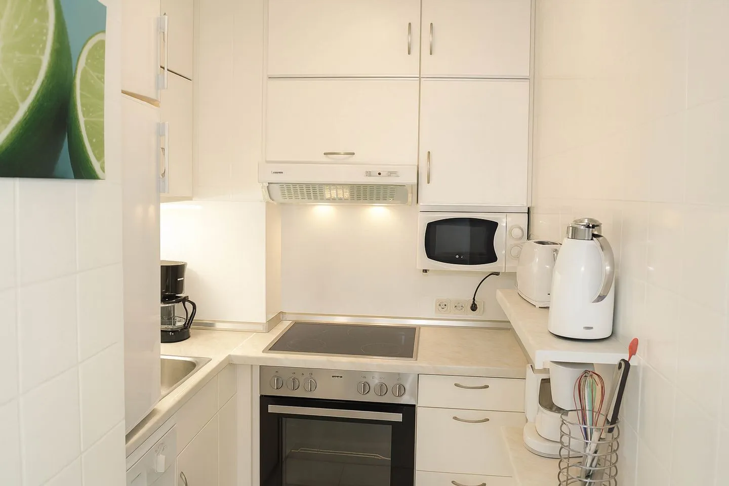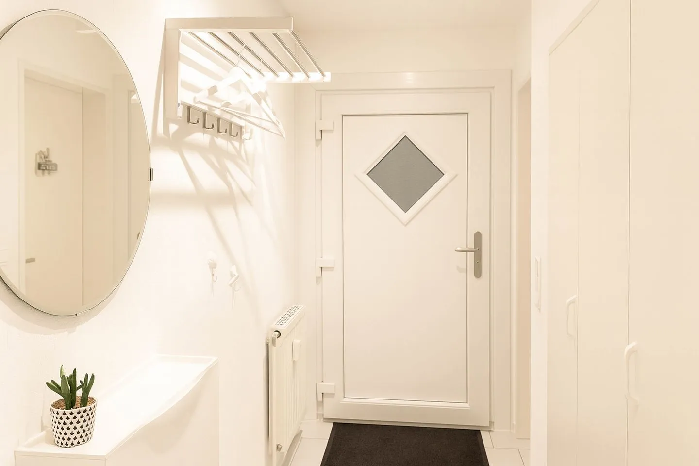 Die Wohnung ist komplett gefliest und verfügt über eine Gaszentralheizung sowie elektrisch betriebene Außenjalousien. Eine Waschmaschine in einem Wandschrank im freundlich gestalteten Flur, ein eigener PKW Stellplatz am Haus sowie ein separater, zur Wohnung gehörender und abschließbarer Fahrradschuppen mit Steckdosen (ggfs. für Ihre E-Bikes), direkt gegenüber der Wohnungstür, machen Ihren entspannten Urlaub perfekt
