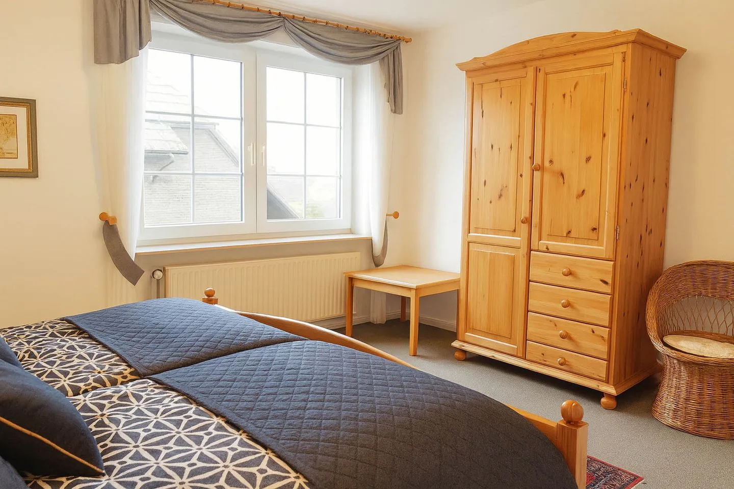 Das gemütliche Schlafzimmer mit komfortablem Doppelbett lädt zu erholsamen Nächten ein und sorgt dafür, dass Sie nach langen Spaziergängen am Meer wunderbar zur Ruhe kommen. Das helle Wohnzimmer mit integrierter Küchenzeile und Essbereich bildet den Mittelpunkt der Wohnung und überzeugt durch seine freundliche Atmosphäre. Hier können Sie gemeinsam kochen, essen und entspannen oder den Tag in aller Ruhe ausklingen lassen. Die gut ausgestattete Küche verfügt über einen Backofen sowie einen Kühlschrank mit Gefrierfach und bietet damit alles, was Sie für genussvolle Mahlzeiten im Urlaub benötigen.