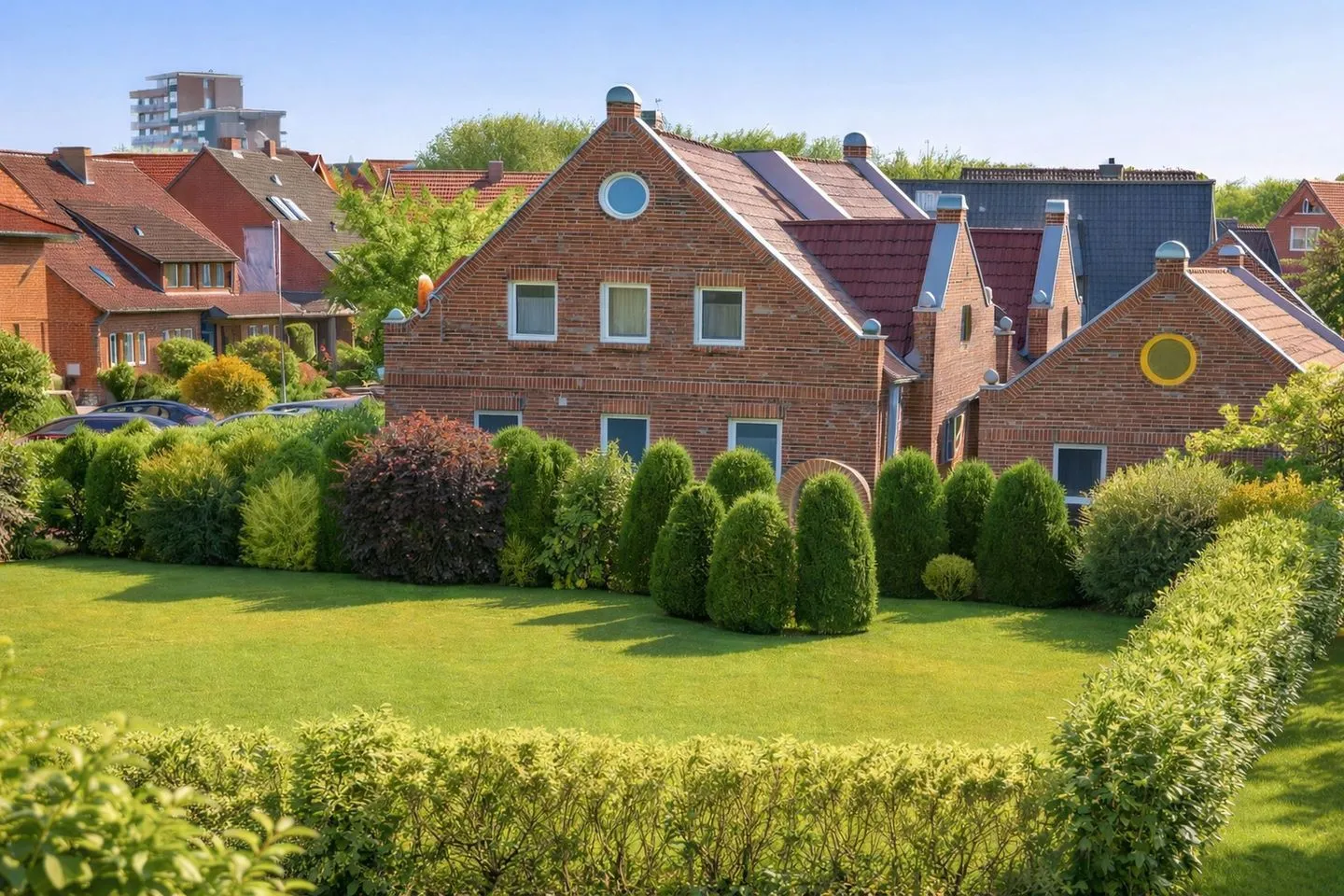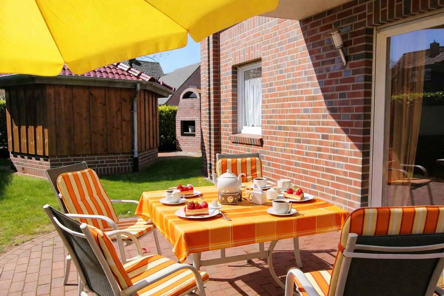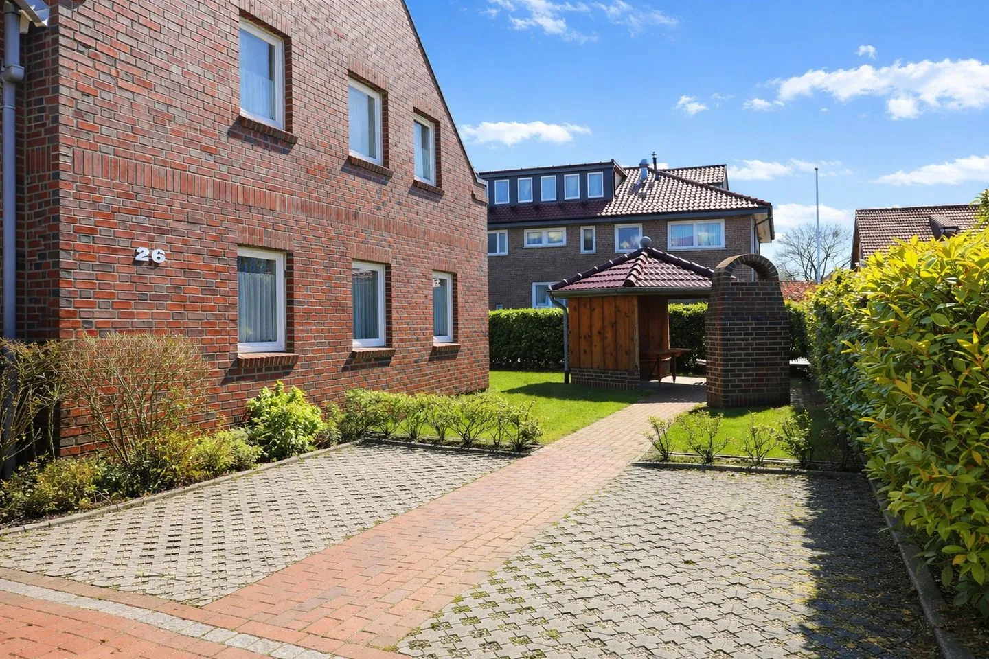Zwei separate Schlafzimmer mit komfortablen Doppelbetten, Laminatboden und geräumigen Schränken sorgen für erholsamen Schlaf und ausreichend Stauraum. Für zusätzlichen Komfort stehen Ihnen zwei PKW-Stellplätze direkt an der Wohnung sowie ein eigener Fahrradabstellraum zur Verfügung. Gemeinsam mit der Wohnung im Obergeschoss können Sie zudem kostenfrei Waschmaschine und Trockner im Haus nutzen. Ein überdachter, windgeschützter Grillplatz mit gemauertem Grill im Garten lädt zu geselligen Abenden ein, während der große Garten hinter dem Haus viel Platz zum Sonnen, Entspannen oder Spielen für Kinder bietet. Diese Ferienwohnung ist der ideale Ort für alle, die Ruhe, Komfort und Strandnähe in perfekter Harmonie erleben möchten.