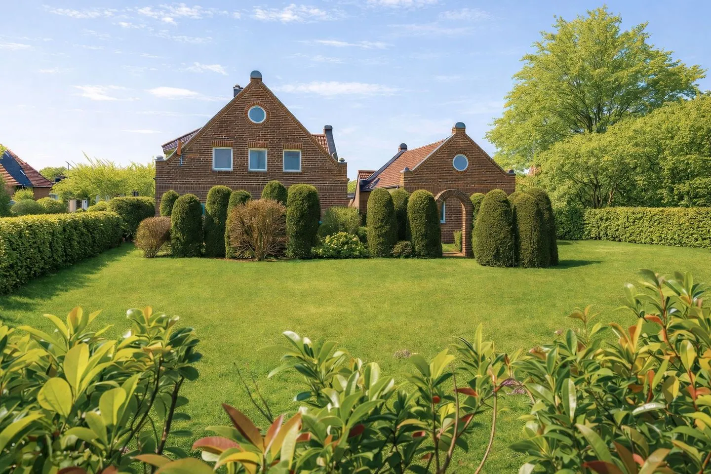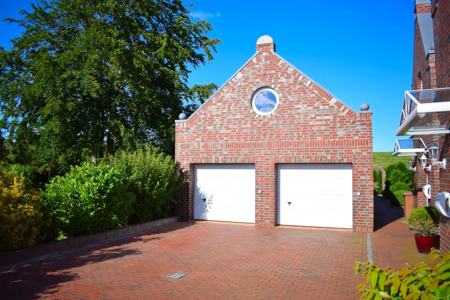 Auch außerhalb der Wohnung bleiben kaum Wünsche offen: Eine Garage befindet sich direkt am Haus, ebenso wie ein eigener Fahrradabstellraum. Zusätzlich stehen Ihnen eine Waschmaschine und ein Trockner im Haus zur kostenlosen Nutzung zur Verfügung. Im Garten erwartet Sie ein überdachter, windgeschützter Grillplatz mit gemauertem Grill, der zu gemütlichen Abenden einlädt. Der große Garten hinter dem Haus bietet zudem viel Platz zum Sonnenbaden oder Spielen – ideal für Familien mit Kindern.