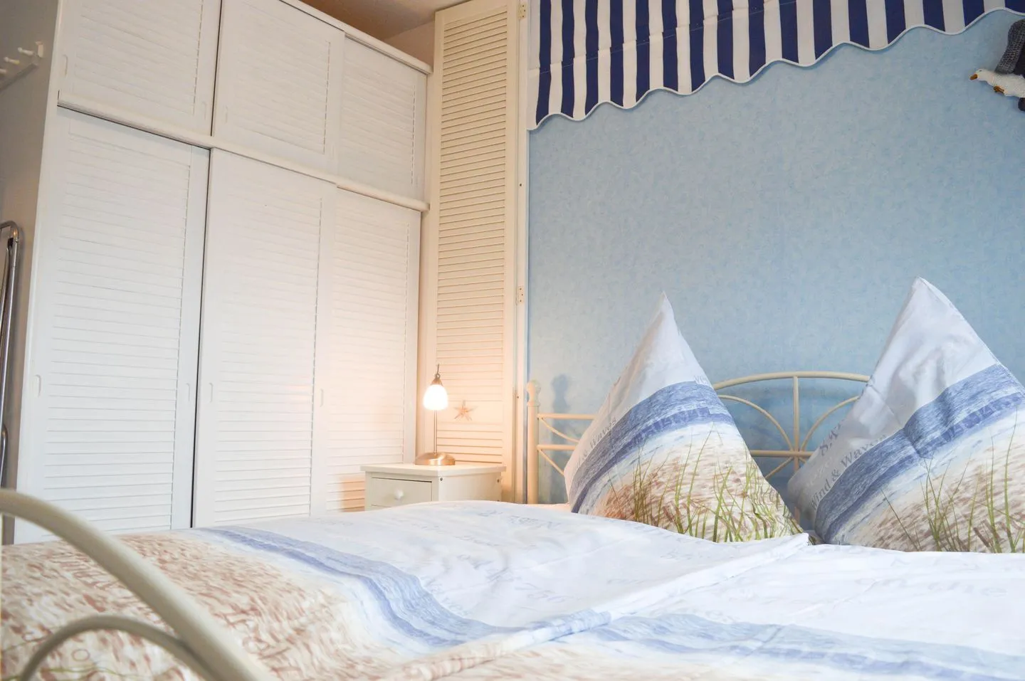 Ein Schlafzimmer mit komfortablem Doppelbett sowie ein separates Kinderzimmer mit Etagenbett bieten erholsame Rückzugsmöglichkeiten für Groß und Klein. Beide Zimmer sind mit Fliegenschutzgittern ausgestattet und sorgen so auch in den Sommermonaten für angenehme Nächte. Das Badezimmer verfügt über eine Dusche und ein WC, ein Haarfön ist selbstverständlich vorhanden. Zusätzliche Annehmlichkeiten wie ein Hochstuhl, ein Bügeleisen und kostenfreies WLAN machen Ihren Aufenthalt noch angenehmer. Im Haus stehen Ihnen außerdem eine gemeinschaftlich nutzbare Münz-Waschmaschine und ein Trockner zur Verfügung – besonders praktisch bei längeren Aufenthalten.