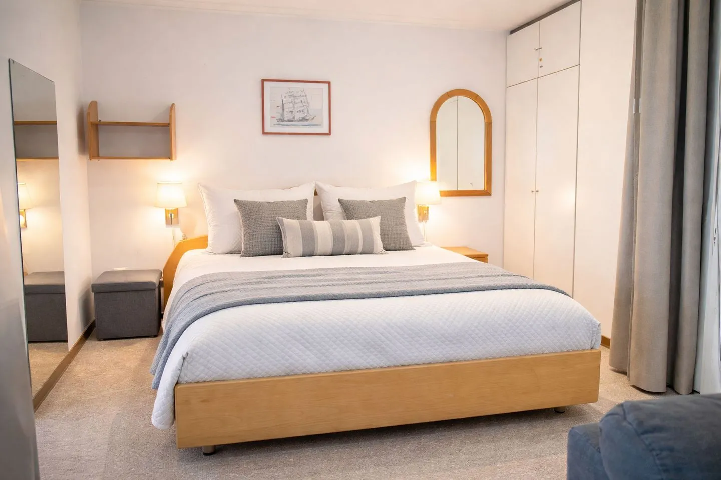 Der gemütliche Schlafbereich mit komfortablem Doppelbett in der Größe 1,80 m x 2,00 m ist durch einen Vorhang optisch vom Wohnbereich getrennt. Für die kleinen Gäste steht ein separates Kinderschlafzimmer mit praktischem Etagenbett in den Maßen 90 cm x 1,95 m zur Verfügung, das direkt an das Wohnzimmer angrenzt. Ergänzt wird das Raumangebot durch ein weiteres Schlafzimmer mit einem bequemen Schlafsofa mit einer Liegefläche von 1,37 m Breite, das sich ideal für flexible Übernachtungsmöglichkeiten eignet.