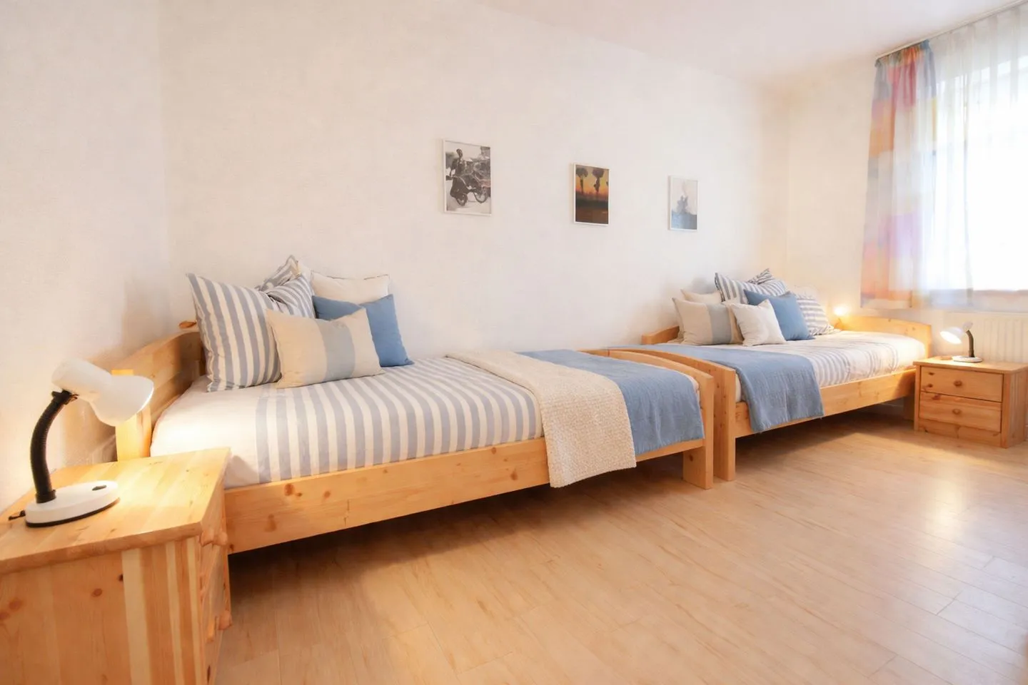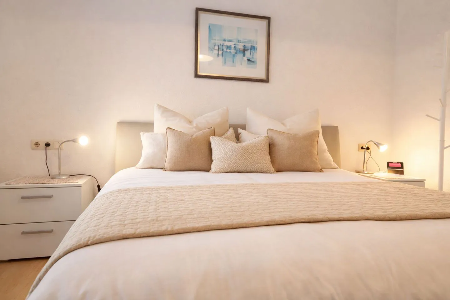 Die Ferienwohnung Boje 5 verfügt über zwei separate Schlafzimmer, die für erholsame Nächte sorgen. Das Elternschlafzimmer ist mit einem gemütlichen Doppelbett ausgestattet, während das zweite Schlafzimmer über zwei Einzelbetten verfügt. Das moderne Badezimmer ist mit einer bodennahen Dusche und einem WC ausgestattet und bietet Komfort und Funktionalität in ansprechendem Design. Ein eigener Parkplatz direkt am Haus sorgt für eine stressfreie An- und Abreise und rundet den Aufenthalt angenehm ab. Selbstverständlich steht Ihnen kostenfreies WLAN zur Verfügung, damit Sie auch im Urlaub jederzeit erreichbar bleiben oder Ihre schönsten Urlaubsmomente teilen können.