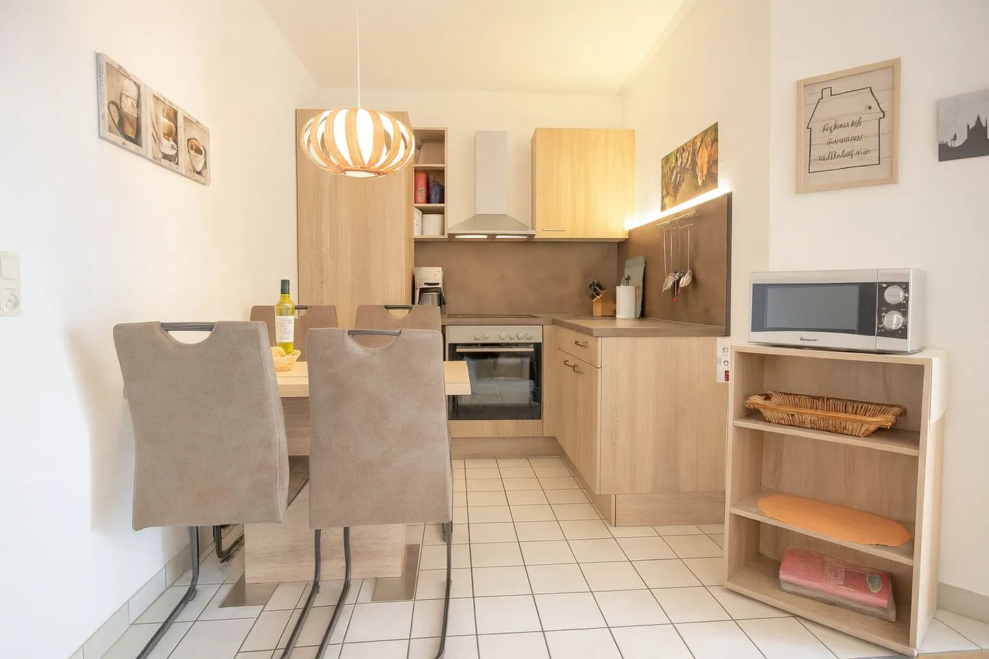 Die Ferienwohnung Boje 9 heißt Sie in bester Lage in Schillig herzlich willkommen und bietet auf rund 60 Quadratmetern in der ersten Etage des Appartementhauses Boje ideale Voraussetzungen für einen entspannten Erholungsurlaub mit bis zu vier Personen. Hier fällt das Ankommen leicht, denn die helle, freundliche Atmosphäre sorgt vom ersten Moment an für echtes Urlaubsgefühl. Die offen gestaltete Küche ist harmonisch in den Wohnbereich integriert und mit Cerankochfeld, Mikrowelle, Toaster, Kaffeemaschine, Wasserkocher sowie einem Kühlschrank bestens ausgestattet, sodass Sie sich im Urlaub ganz flexibel selbst versorgen können. Der Wohnbereich mit integriertem Essplatz ist lichtdurchflutet und lädt zu gemeinsamen Mahlzeiten, entspannten Abenden oder gemütlichen Stunden nach einem Tag am Meer ein.