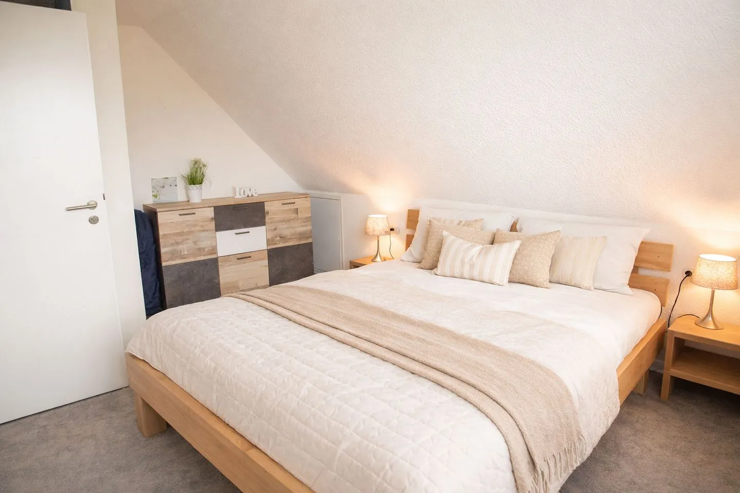 Das moderne Tageslichtbad rundet den Wohnkomfort ab und verfügt über eine Dusche, ein Waschbecken und eine Toilette. Wohn- und Schlafbereich lassen sich dank Rollläden angenehm verdunkeln und schaffen ideale Voraussetzungen für erholsame Nächte. Die gesamte Wohnung wird über eine Gas-Zentralheizung beheizt und bietet somit zu jeder Jahreszeit ein behagliches Wohnklima.
