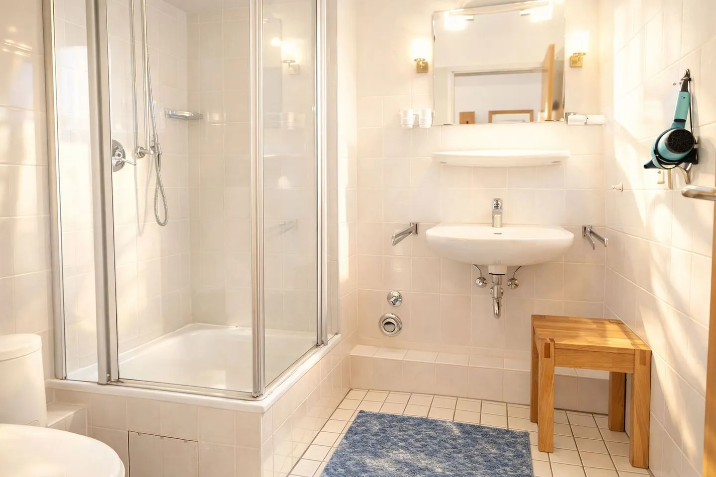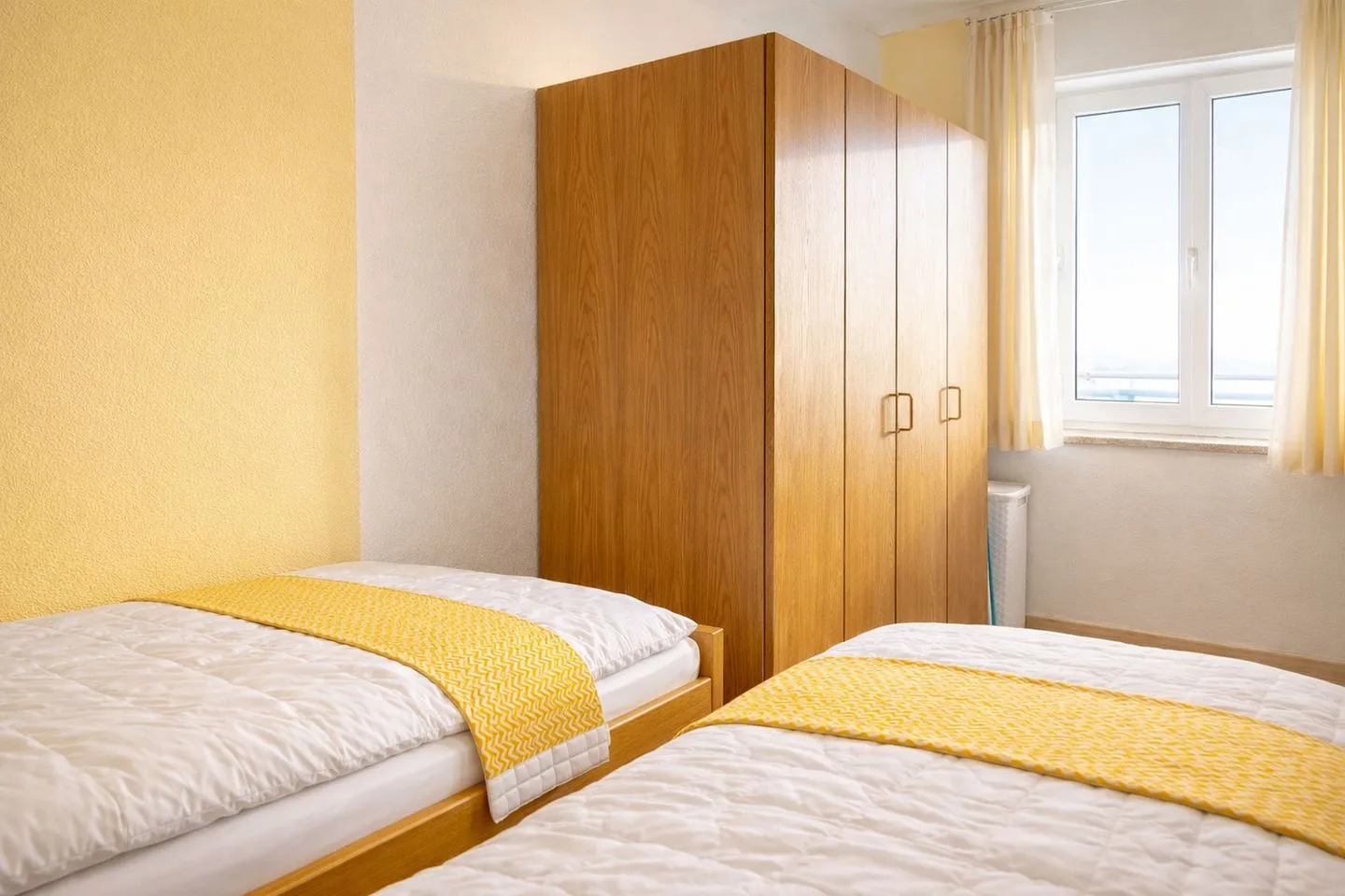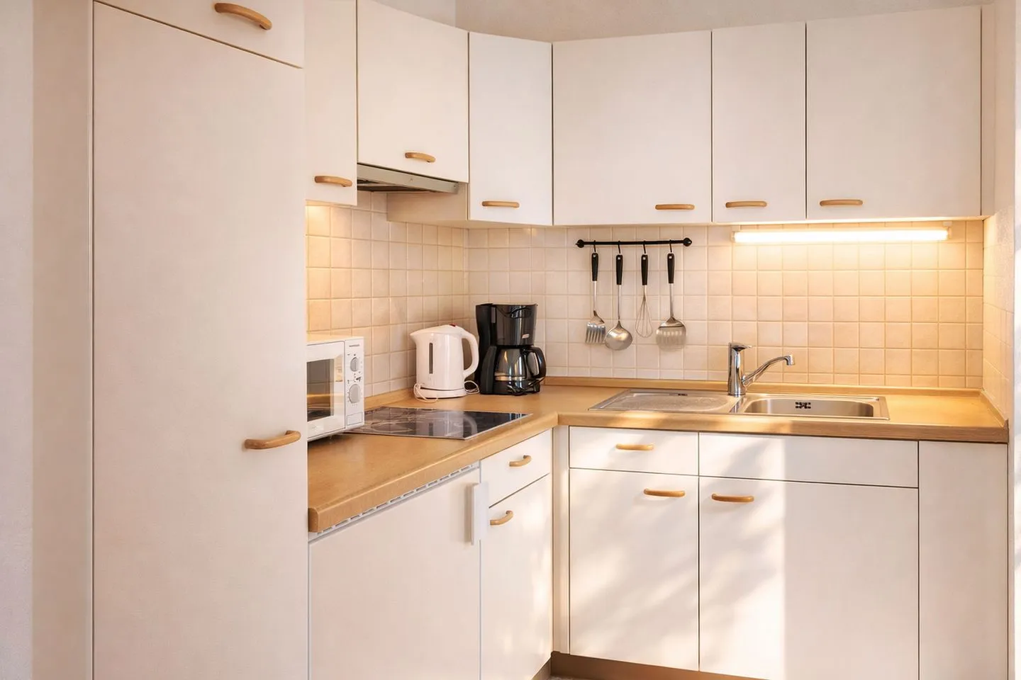 Die liebevoll eingerichtete Wohnung verfügt über ein separates Schlafzimmer mit zwei gemütlichen Einzelbetten und bietet im hellen Wohnbereich zusätzlich ein komfortables Schlafsofa, sodass auch eine weitere Person bequem Platz findet. Die funktionale und zugleich gut ausgestattete Küchenzeile lädt dazu ein, den Tag ganz nach den eigenen Wünschen zu gestalten. Mit Kaffeemaschine, Vier-Platten-Cerankochfeld, Mikrowelle, Kühlschrank mit Gefrierfach, Wasserkocher und Toaster ist alles vorhanden, um vom schnellen Frühstück bis zum entspannten Abendessen bestens versorgt zu sein. Besonders schön ist der Zugang vom Wohnbereich auf den Balkon, der zu jeder Tageszeit ein beliebter Ort ist, um bei einem Frühstück den Morgen zu begrüßen oder bei einem Glas Wein den Abend gemütlich ausklingen zu lassen.