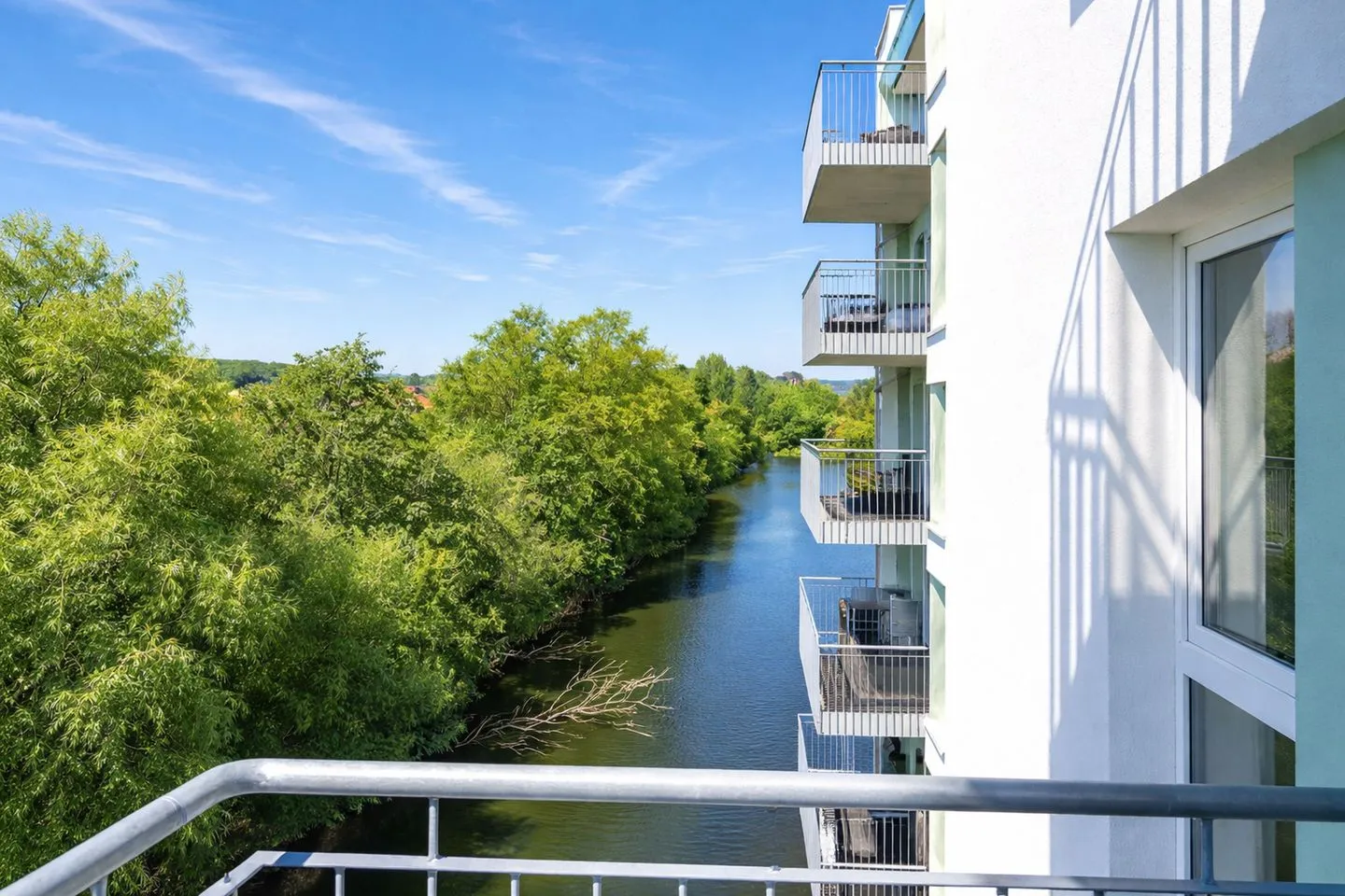 Der möblierte Süd-Balkon erweitert den Wohnraum ins Freie und lädt dazu ein, die frische Seeluft und wärmende Sonnenstrahlen zu genießen. Mit freiem Blick auf die Graft und ins satte Grün können Sie tagsüber entspannen und abends traumhafte Sonnenuntergänge erleben. Von der östlichen Ecke des Balkons eröffnet sich sogar ein Blick über den Deich auf das Wattenmeer, der bis zu den Inseln Wangerooge und Minsener Oog reicht – ein Panorama, das jeden Urlaubsmoment besonders macht.