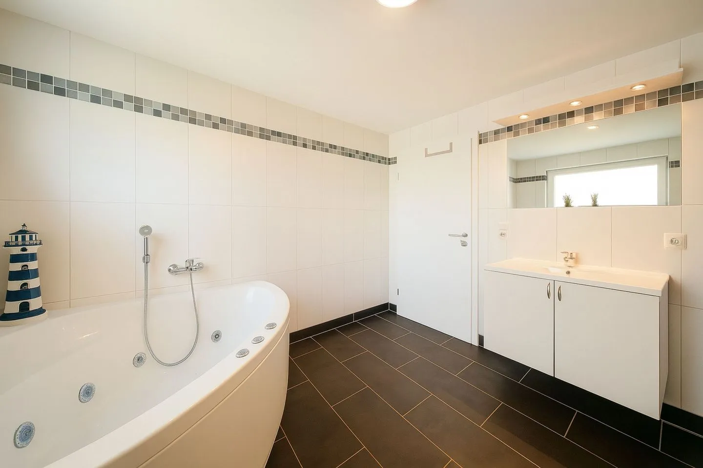 Ein besonderes Highlight ist der eigene Wellnessbereich mit Sauna und Whirlbadewanne, der zu wohltuender Erholung nach einem Tag am Meer einlädt. Die voll ausgestattete Einbauküche verfügt über eine Spülmaschine, einen Backofen, eine Mikrowelle, einen Kühlschrank mit Gefrierfach sowie über eine klassische Kaffeemaschine und eine Tchibo-Cafissimo-Kapselmaschine. Toaster und Wasserkocher runden die umfangreiche Ausstattung ab und bieten Ihnen alles, was Sie für einen angenehmen Aufenthalt benötigen.