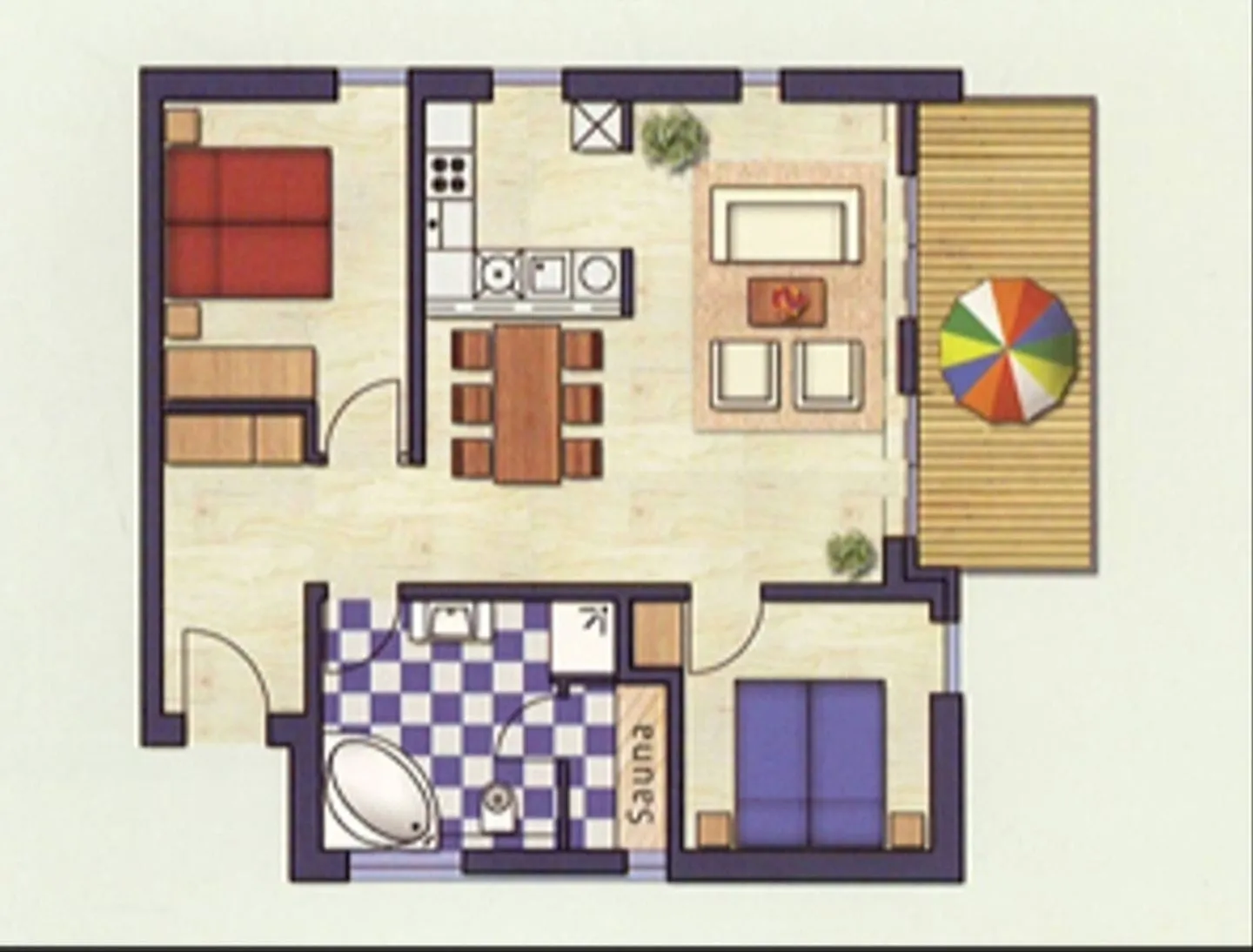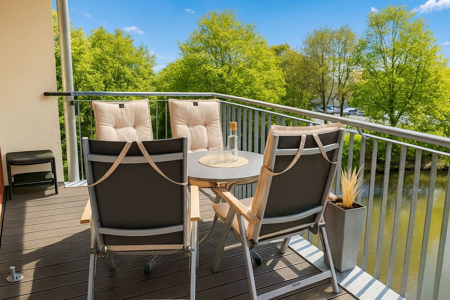 Die Ferienwohnung Waterkant im Nordsee Ferienpark Schillig bietet Ihnen ein exklusives und komfortables Wohnambiente für einen erholsamen Nordseeurlaub. Die moderne, lichtdurchflutete Wohnung befindet sich im ersten Obergeschoss und ist bequem per Aufzug erreichbar. Auf rund 79 m² finden bis zu vier Personen großzügig Platz. Zwei separate Schlafzimmer mit jeweils einem Doppelbett sorgen für erholsame Nächte; für Familien stehen zudem ein Kinderreisebett und ein Hochstuhl bereit. Der offene Wohn- und Essbereich lädt zum Entspannen ein und ist mit drei Fernsehern, einem DVD-Player inklusive Filmen, einer kleinen Bücherauswahl sowie kostenfreiem WLAN ausgestattet. Ein sonniger Süd-Balkon erweitert den Wohnraum nach draußen.
