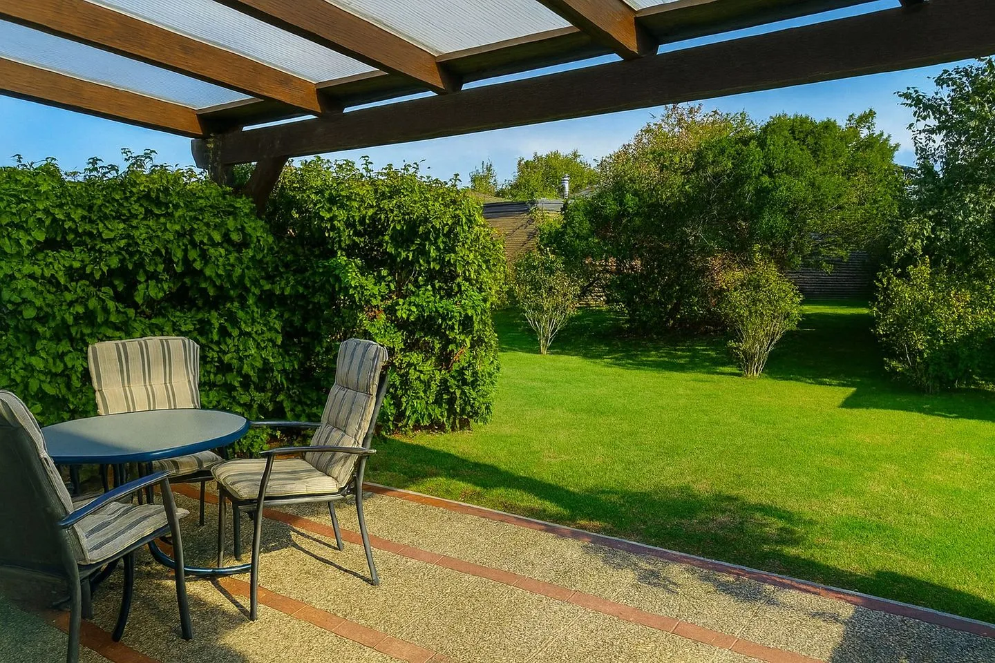 Der Wohnbereich ist gemütlich gestaltet und bietet einen Essplatz, der auch für Familien bestens geeignet ist, da ein Kinderhochstuhl zur Verfügung steht. Ein Fernseher mit Satellitenempfang sowie ein Radio sorgen für Unterhaltung, während der direkte Zugang auf die große, überdachte Terrasse den Wohnraum harmonisch nach draußen erweitert. Die Terrasse und der angrenzende Garten laden zu entspannten Stunden an der frischen Nordseeluft ein, sei es beim Frühstück, beim Spielen oder beim gemütlichen Ausklang des Tages.